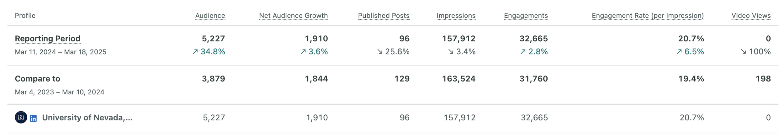 I create and manage digital campaigns for @BizUNR, using TikTok and Instagram Reels to engage students and promote campus events. In four months, I grew our social media following by 600+, generated over 2 million views, and increased impressions by 130%. Engagement rose by 600%, with a 2.5% increase in interaction rates. I collaborate with faculty and student organizations to create authentic content, using Canva, Premiere Pro, and CapCut for design and video editing. I also assist with email marketing, website updates, and graphic design for recruitment and outreach.